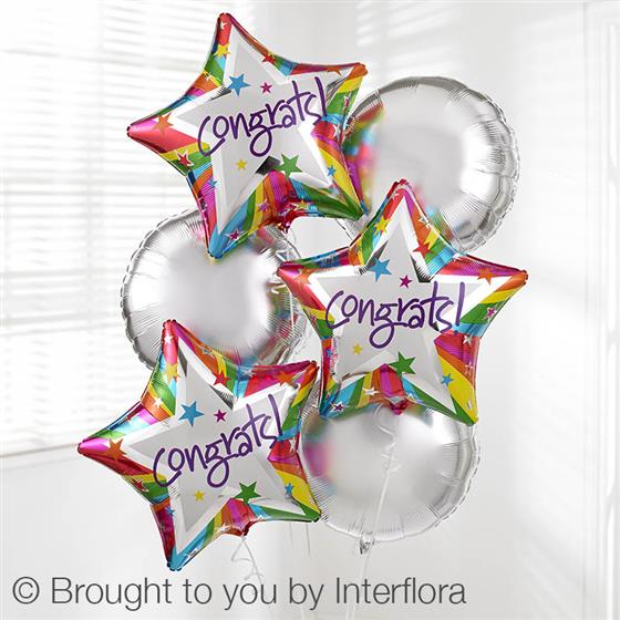 Congratulate someone with a surprise delivery of six helium-filled balloons. Our Congratulations Balloon Bouquet includes three bright blue balloons and three 'Congrats' balloons - a gift they’re sure to love!