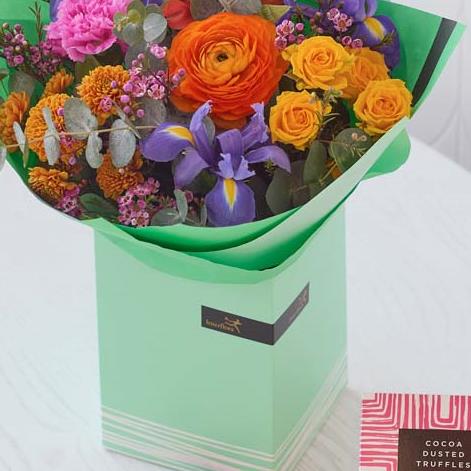 A handcrafted bouquet made by a local florist using the freshest blooms plus delicious chocolatey treats (afterall – it's Easter!). This classic bouquet will feature flowers in vibrant shades inspired by spring. packaging may vary for local orders