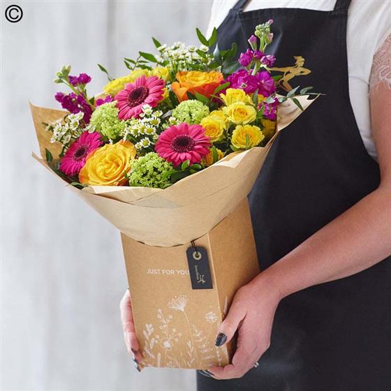 Hand-tied flowers expertly arranged and perfectly presented in a pretty gift box. Each and every design is one-of-a-kind, created by an artisan florist using the freshest stems available on the day so, whilst your gift will look different to the one pictured, it’ll still be just as lovely.
