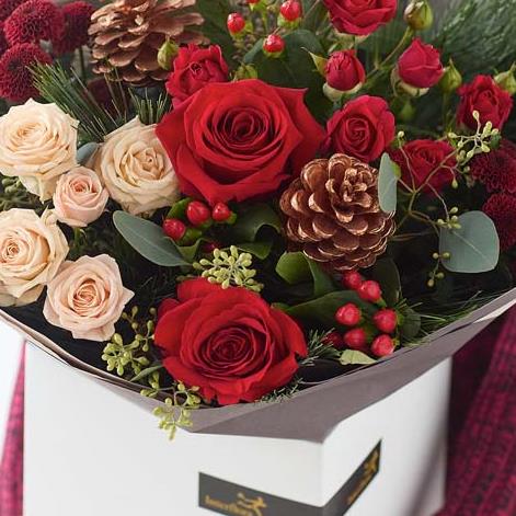 A beautiful bouquet of fresh festive flowers carefully chosen and arranged by a talented local florist.