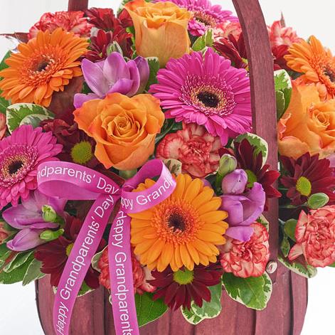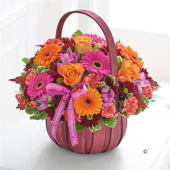 We’ve added even more fresh flowers in bold shades of cerise, hot pink, fiery orange and rich burgundy to give this larger gift even more impact on arrival. It’s a lovely choice for Grandparents’ Day that is sure to be put in pride of place.