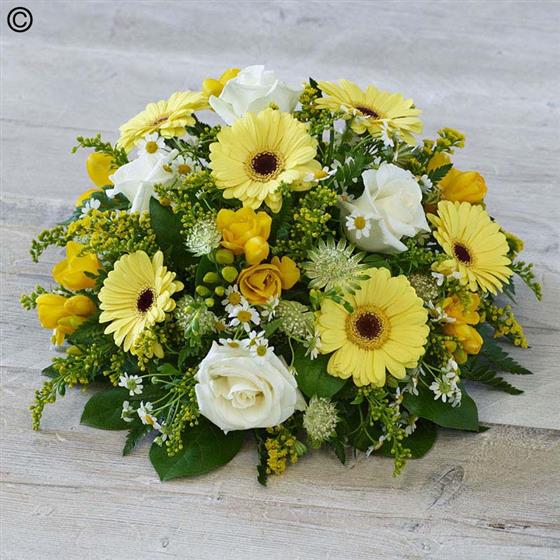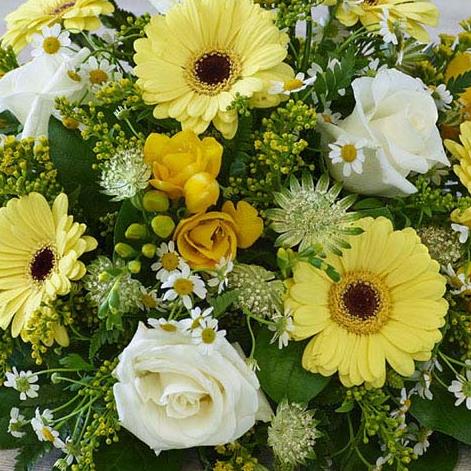 A pretty combination of fresh yellow and white blooms flowers may vary