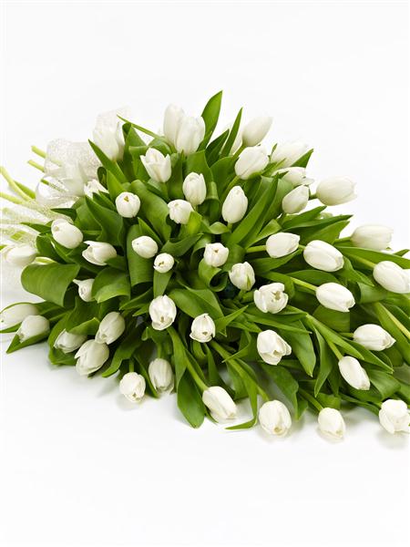 A beautiful arrangement of pure white tulips to create this simple, elegant posy in foam
