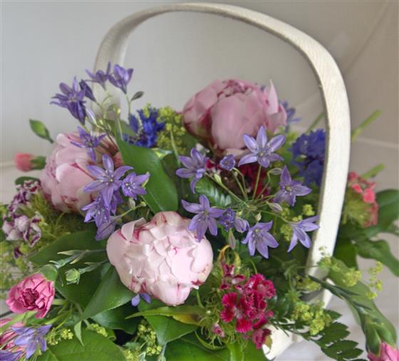 - This flower arrangement is delivered in a basket